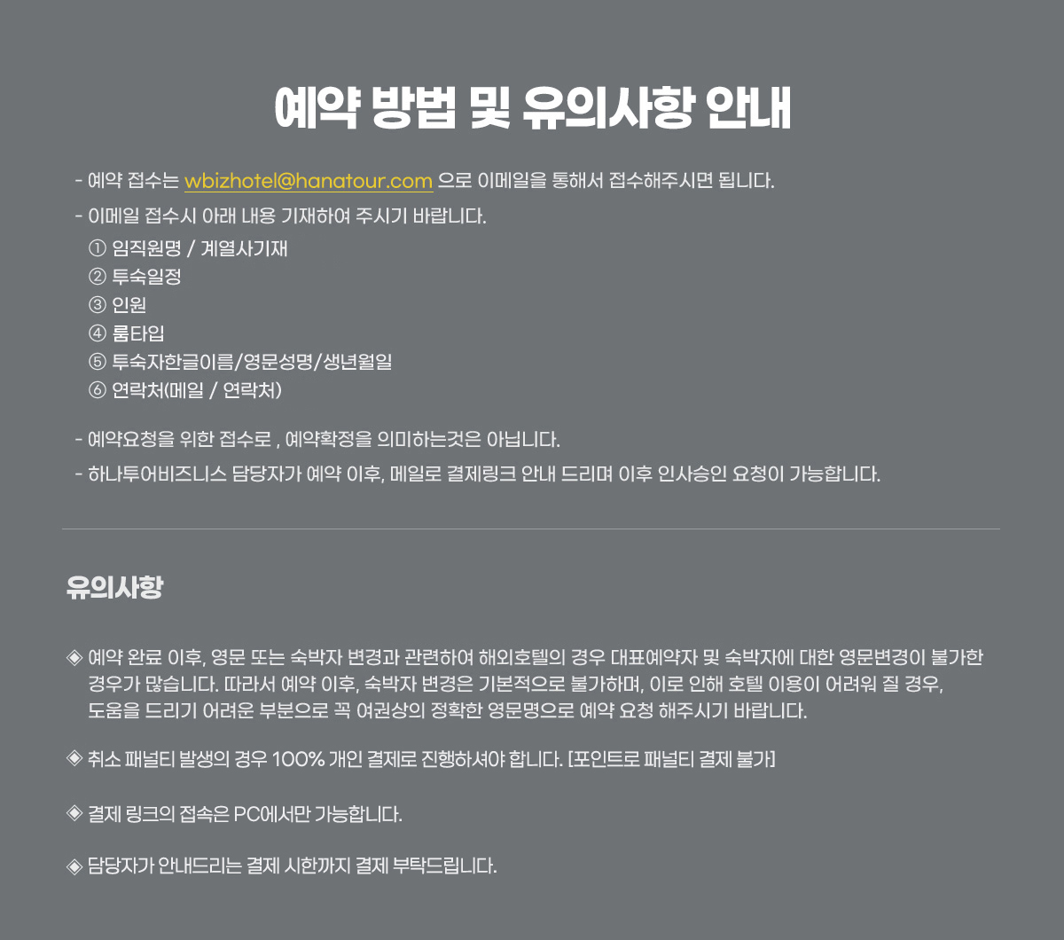 하나투어비즈니스는 통신판매중개업으로 등록된 상품 및 서비스 내용에 대한 모든 책임은 각 여행사에 있습니다.