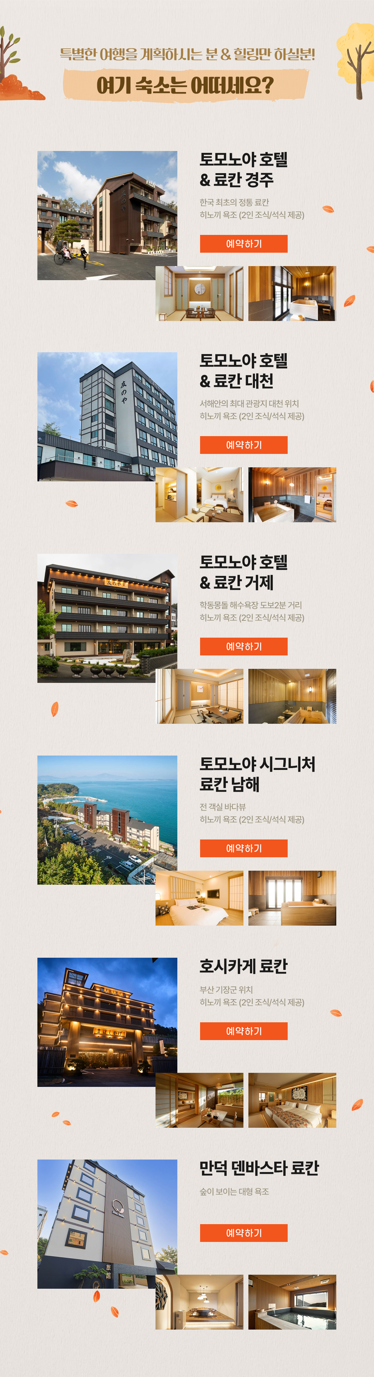 토모노야 경주 토모노야 대천 토모노야 거제 토모노야 남해 호시카게 료칸 만덕덴바스타료칸